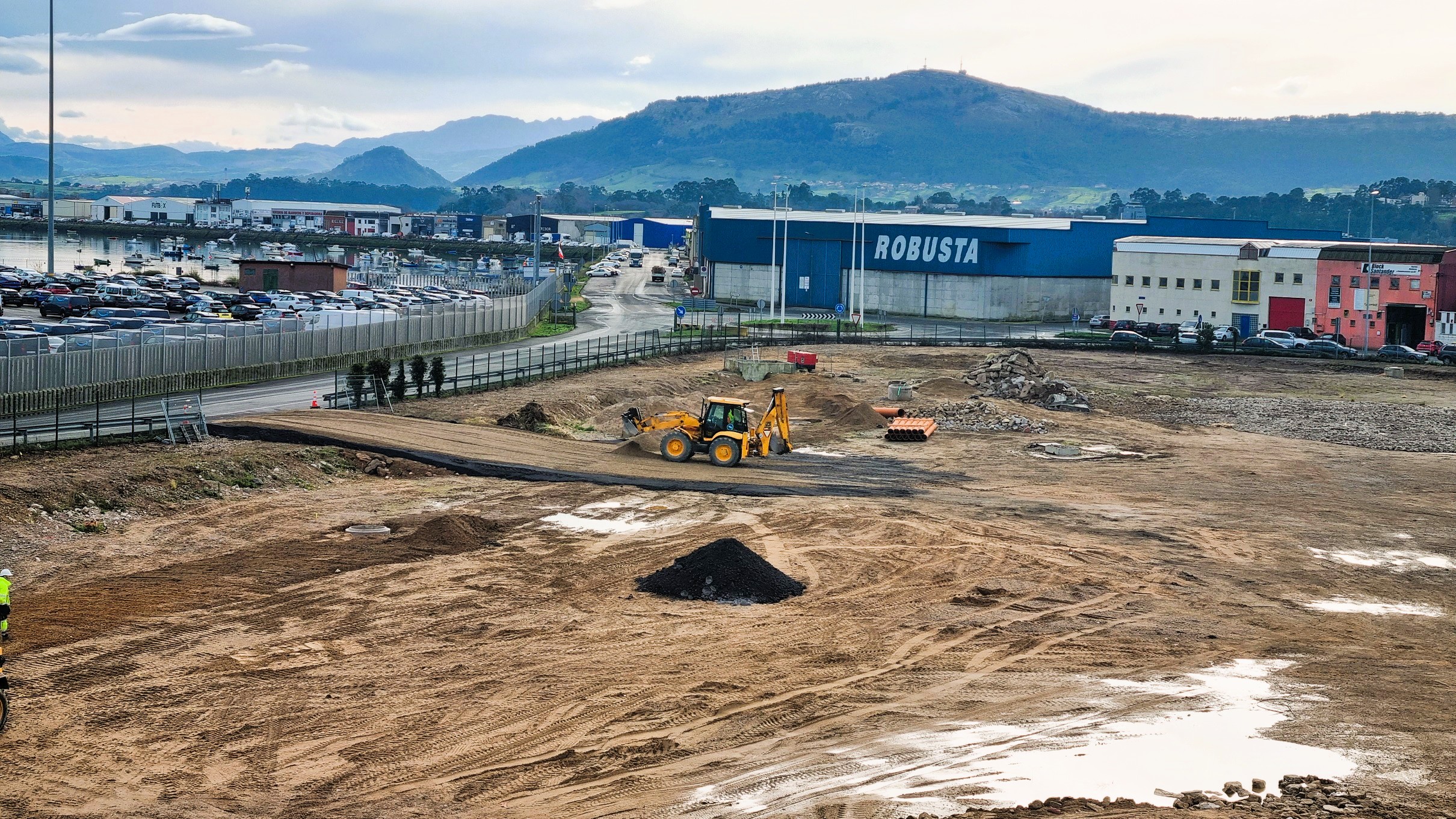 Santander 16/01/2026. Avanzan “a buen ritmo” las obras de urbanización del triángulo curvilíneo de Raos, que, en palabras del presidente de la APS, César Díaz, servirá para “continuar optimizando el escaso espacio del que disponemos y seguir creciendo de manera responsable”.